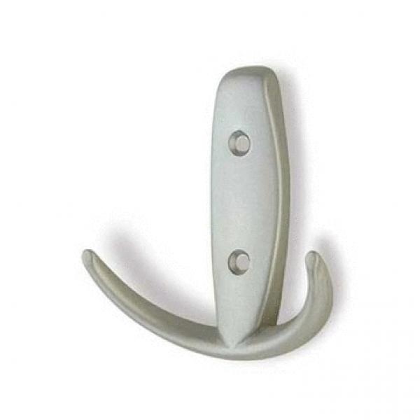 Le crochet en zamac, qui est fini avec un revêtement de couleur aluminium, a deux trous de montage dans le sens vertical.