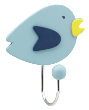 Ce crochet pour enfant bleu clair en bois en forme d'oiseau assure que la chambre de vos enfants a aussi quelque chose en plus.