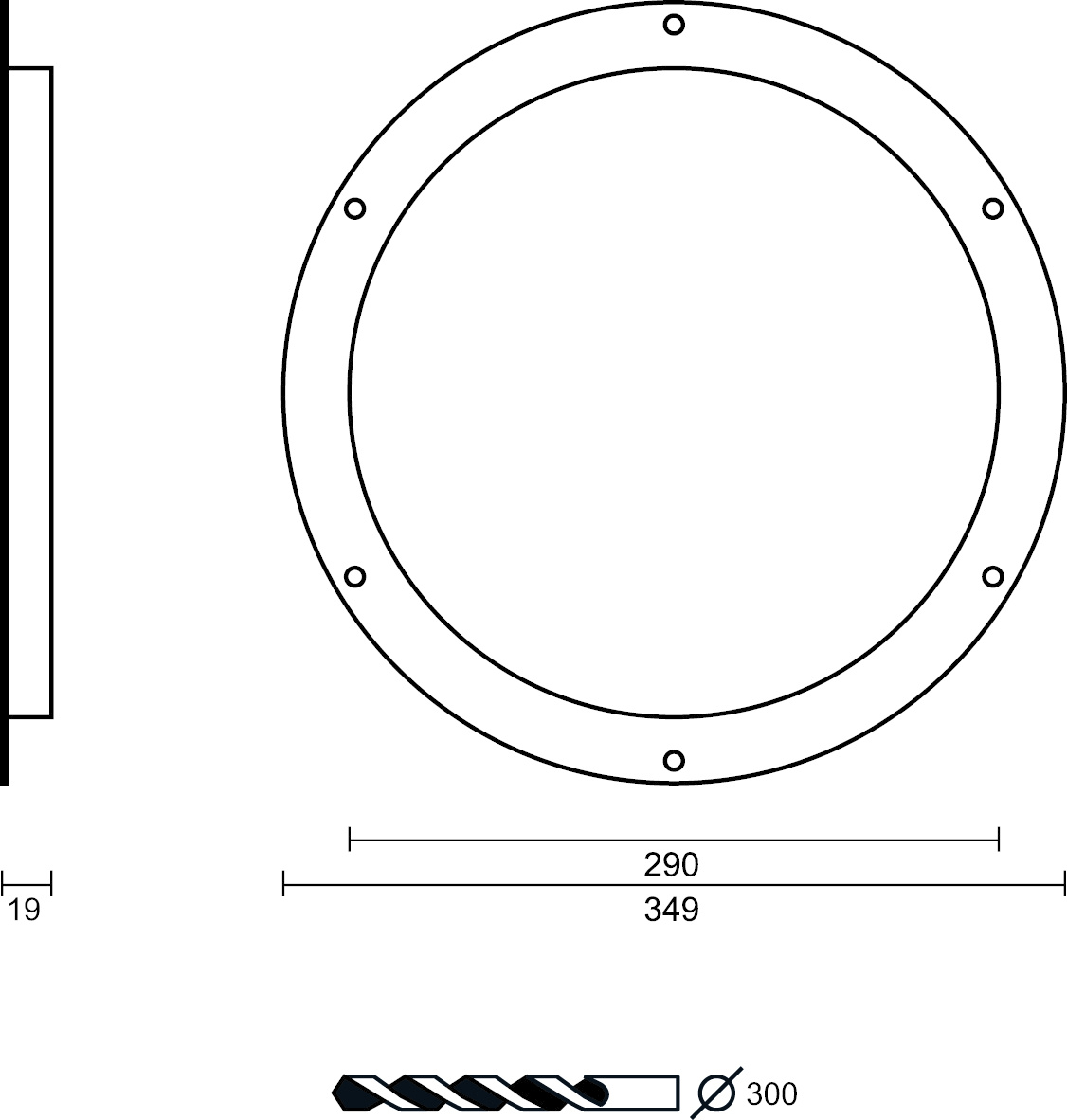 Hublot rond en acier inoxydable plus. Ces hublots ont un diamètre intérieur de 290 mm et un diamètre extérieur de 349 mm.