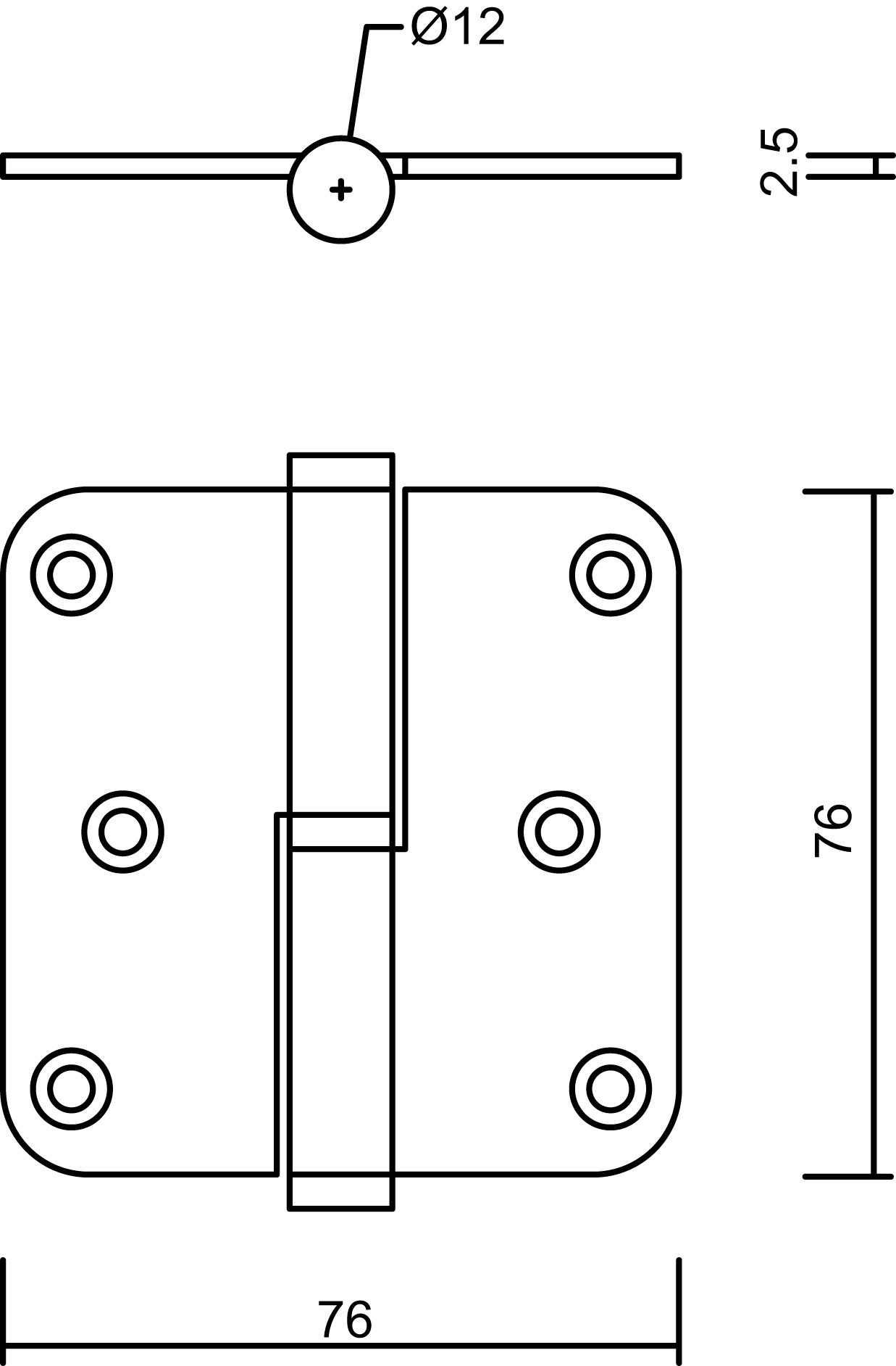 Ces charnières noires ont les dimensions suivantes : 76x76x2,5mm et ont une finition noir mat (RAL9005).
