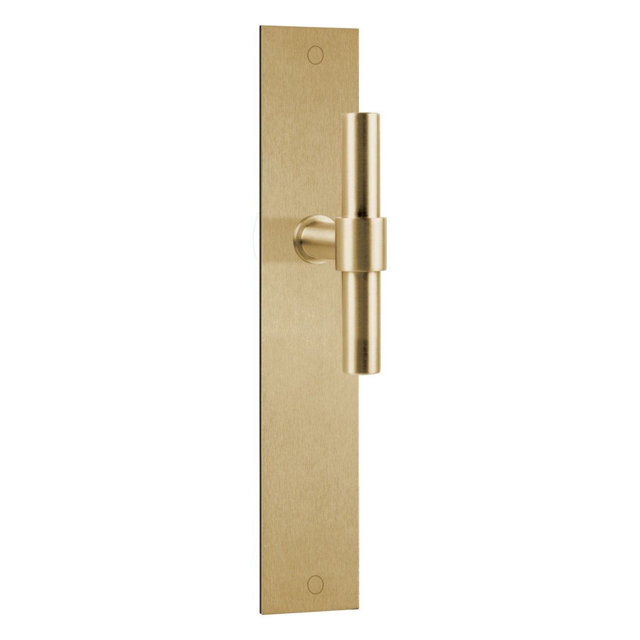 Les poignées de porte massives et sans ressort en forme de T sur panneau aveugle, de la collection de quincaillerie ONE, sont un bel exemple de design intemporel et de finition de haute qualité.