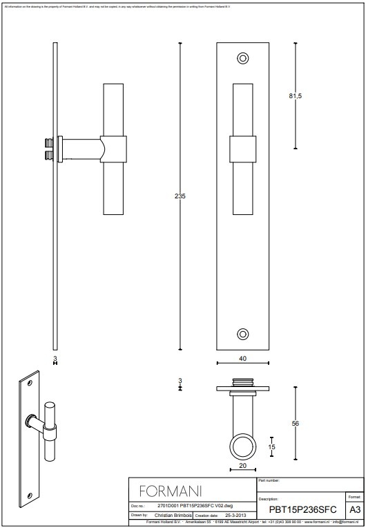Nous proposons ces poignées de porte en versions avec cache aveugle, cache avec trou de serrure (taille d'axe 56-72-110 mm), cache avec trou de cylindre (taille d'axe 72-85-110 mm) et avec raccord WC (taille d'axe 63-78 et 116 mm). ). Faites votre choix dans le menu déroulant en haut à droite.