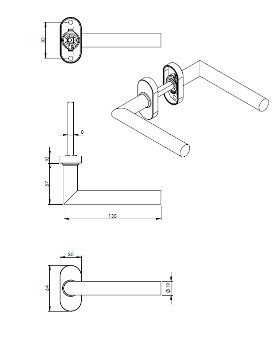Les pièces perforées sont utilisées comme poignée à l'intérieur, par exemple, d'un bouclier de sécurité sur la porte d'entrée ou sur la porte d'une armoire à compteurs au lieu d'une plaque à clé.