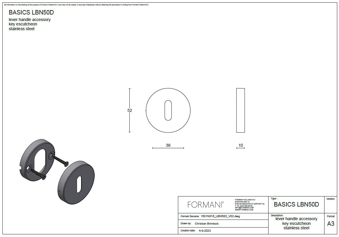 Ces plaques de clé LBN50D en bronze PVD sont fournies par paire comprenant un écusson inférieur, un écusson de finition en bronze PVD et le matériel de montage.