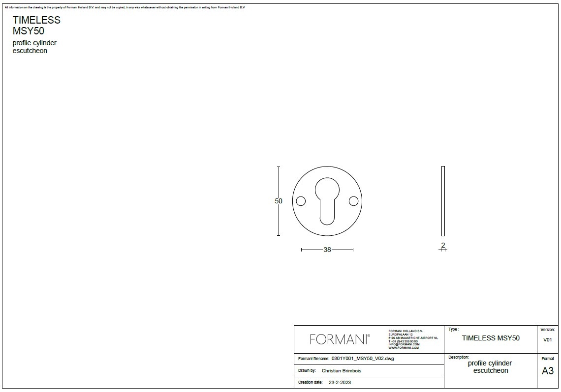 La plaque cylindrique appartient à la série « TIMELESS » de Formani et est en laiton. Elle est dotée d'un revêtement en nickel mat.