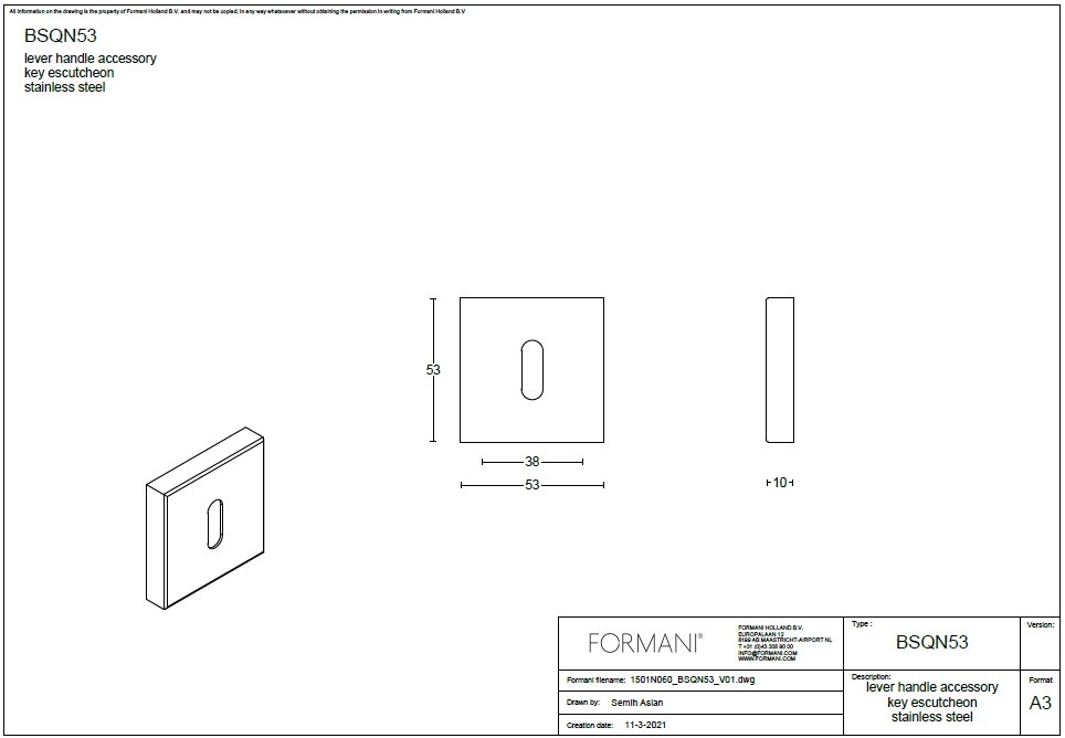 Paire de plaques de clés carrées BSQ N53 BL en bronze clair de la collection Formani « Basics ».