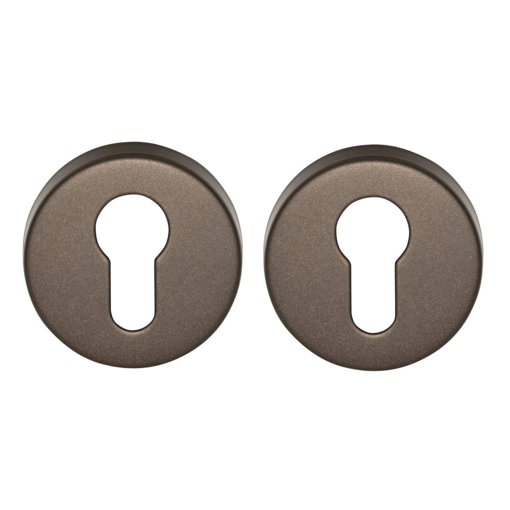 Ces plaques cylindriques LBY50D sont fournies par paire comprenant une rosace inférieure en acier, une rosace de finition en bronze et le matériel de montage.