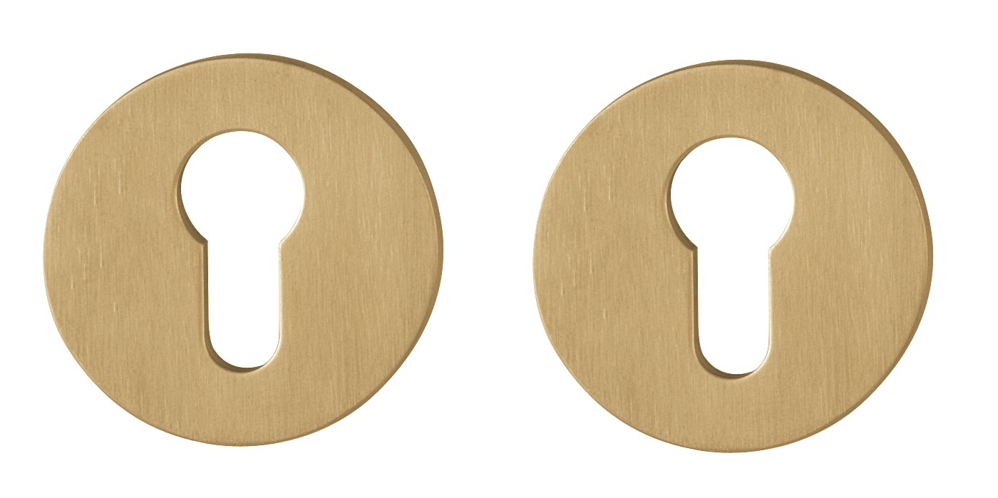 Ces plaques de cylindre en laiton appartiennent aux poignées de porte Los Angeles de Hoppe en finition Resista (F78-1-R) et ont une ouverture de trou de cylindre.