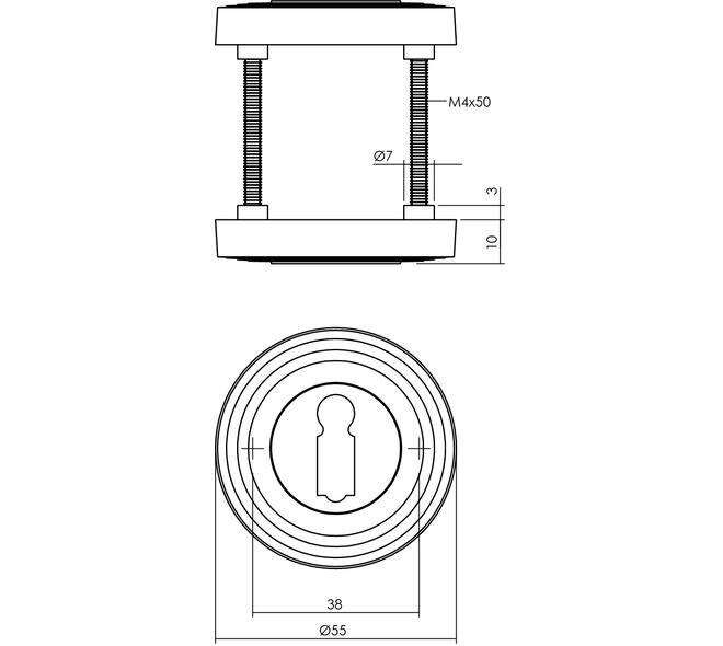 • La rosace mesure 55 x 55 mm et possède une fixation dissimulée.
