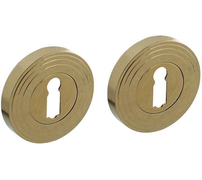 Cette rosace ronde à trou de serrure mesure 55 x 10 mm. Fabriquée en laiton, elle est revêtue d'un PVD couleur laiton de haute qualité, lui conférant un aspect brillant. Elle est également équipée de cames pour une meilleure fixation. Ce produit est vendu par paire, avec la visserie de montage.