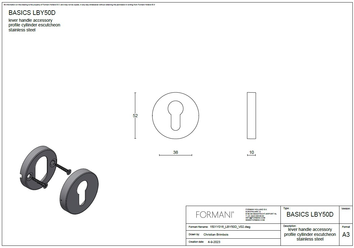 Ces plaques cylindriques LBY50D sont fournies par paire comprenant une rosace inférieure en acier, une rosace de finition en bronze clair PVD et le matériel de montage.