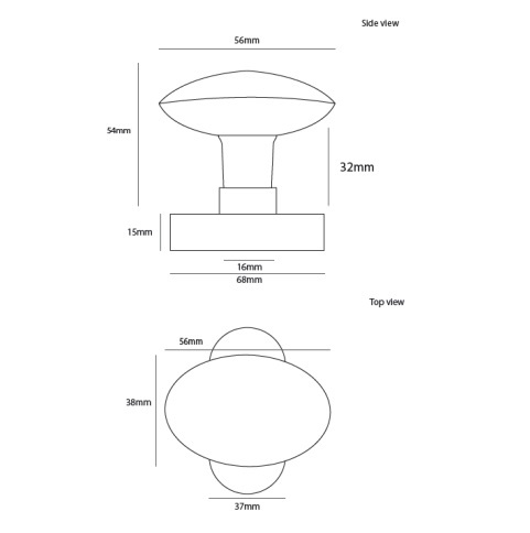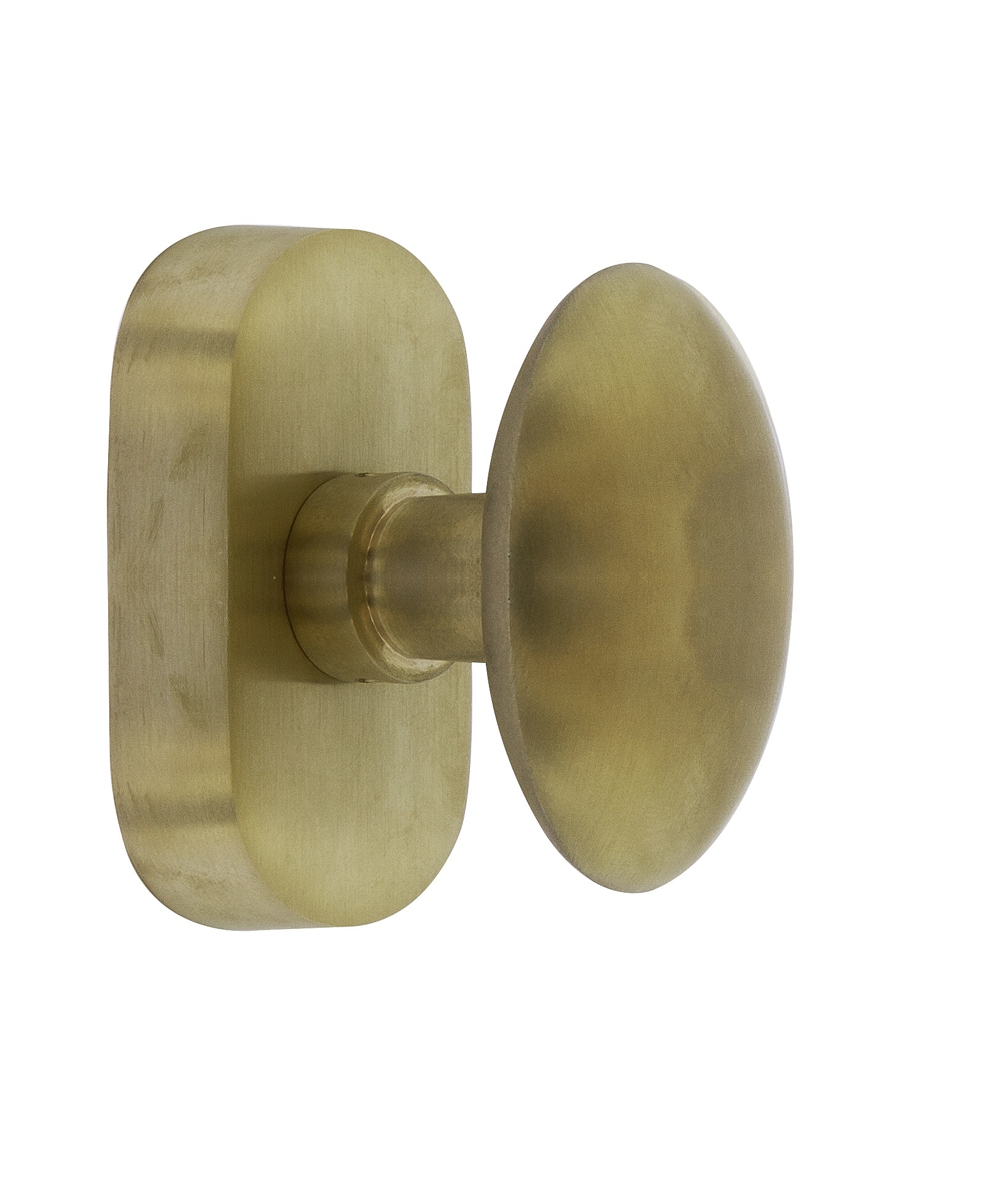 La poignée de fenêtre de la collection CDL (Créations de Laiton) repose sur une rosace ovale de 68x37 mm qui dépasse de 15 mm.