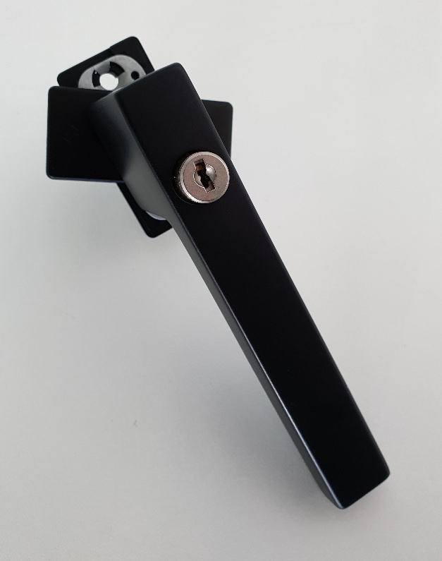 La poignée de fenêtre verrouillable noire a une laque lisse noire mate et a une goupille de 7x7mm avec une longueur de 32mm.