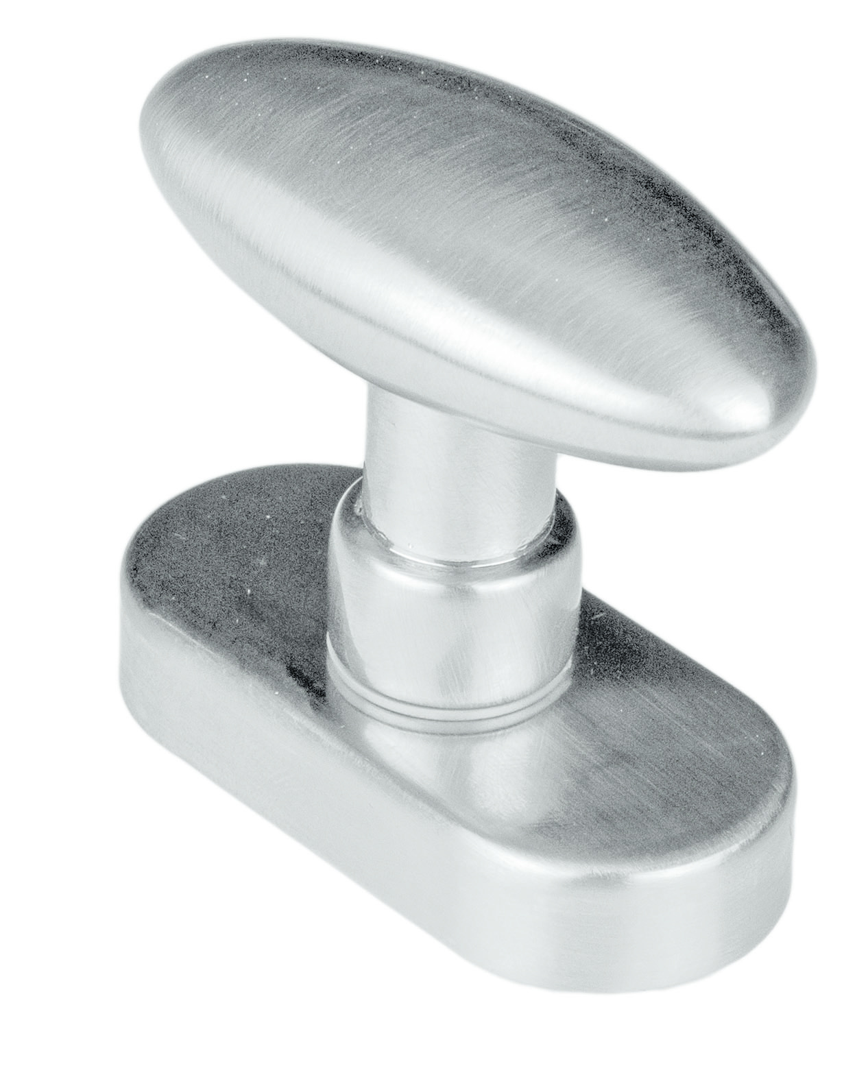 La poignée de forme ovale d'une largeur de 30 mm repose sur une rosace ovale de 64X31 mm. Cela garantit que cette poignée de fenêtre aspect acier inoxydable a une vue plus petite.