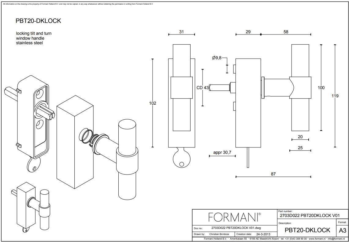 La poignée de fenêtre PVD bronze clair est fournie par pièce comprenant le matériel de montage, la clé et la goupille correspondante de 7x7 mm. La broche devra peut-être être raccourcie de 45 mm en longueur.