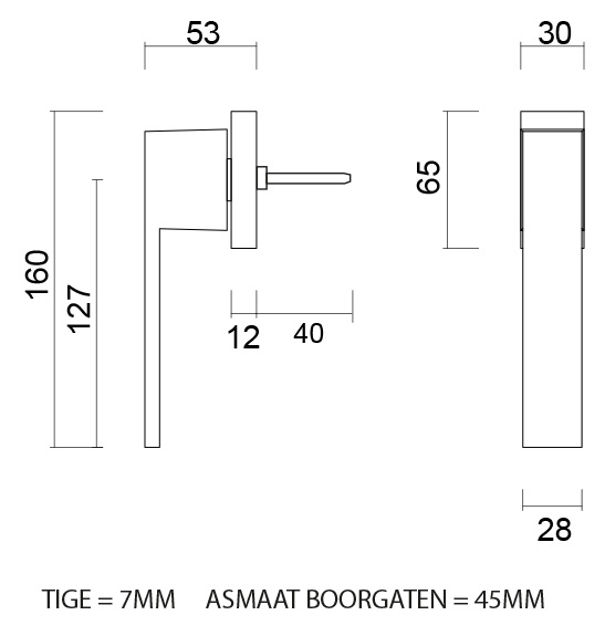 Les poignées de fenêtre sont fournies par pièce, y compris les matériaux de montage et la broche de 7X7X40mm. Les points de montage sont à une distance de 43 mm.