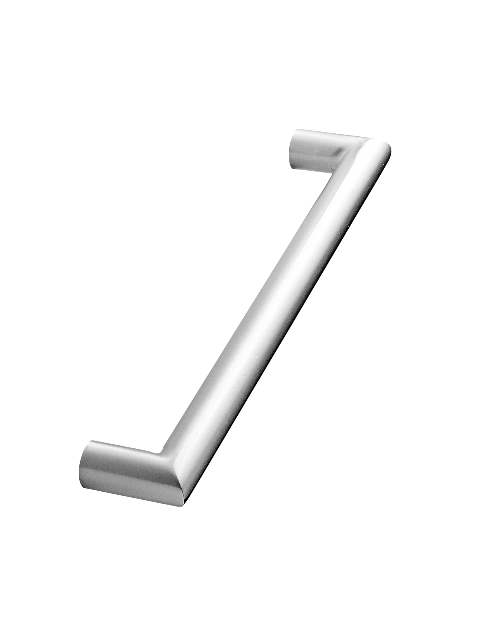 La poignée de meuble en forme de U est en acier inoxydable puis polie pour obtenir un aspect soyeux.