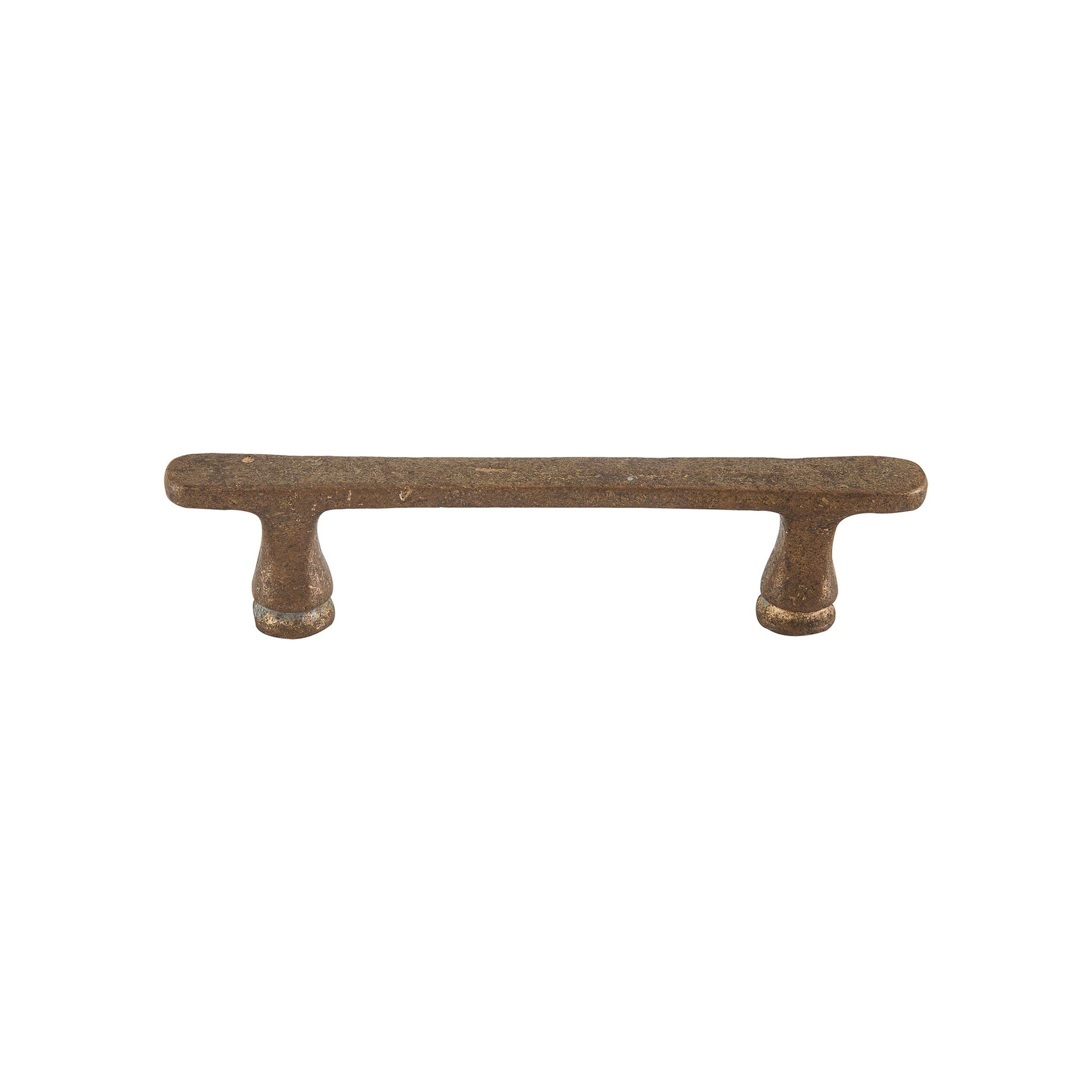 Poignée de meuble en bronze brut avec une taille d'axe de 128 mm et une longueur totale de 184 mm