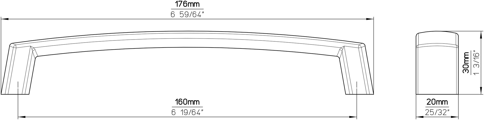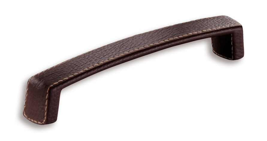 Belle poignée de meuble légèrement incurvée en plastique et finie en cuir marron mat