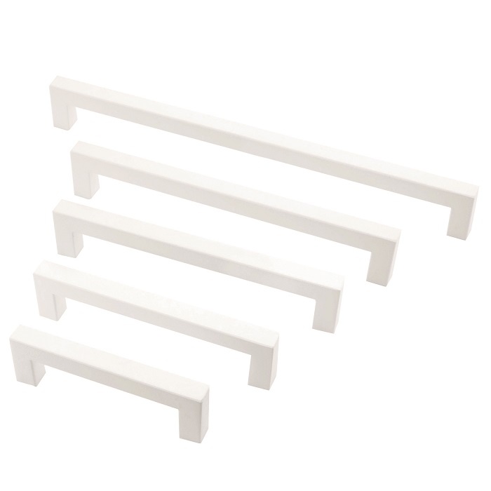 La poignée de meuble a une couleur blanc mat et est disponible en différentes tailles que vous pouvez trouver dans le menu déroulant en haut à droite.