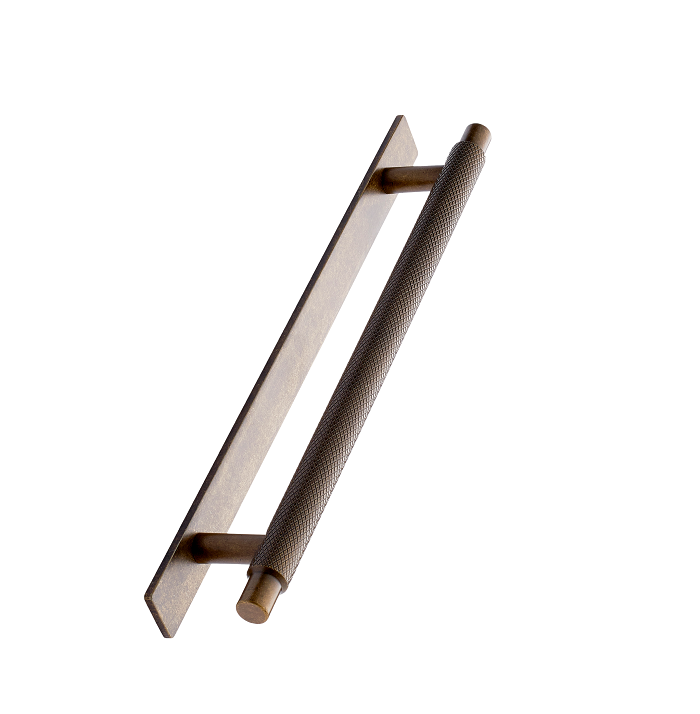 Cette poignée de meuble est fabriquée en zamak, une composition très solide de zinc et d'aluminium, puis pourvue d'un revêtement en laiton antique.