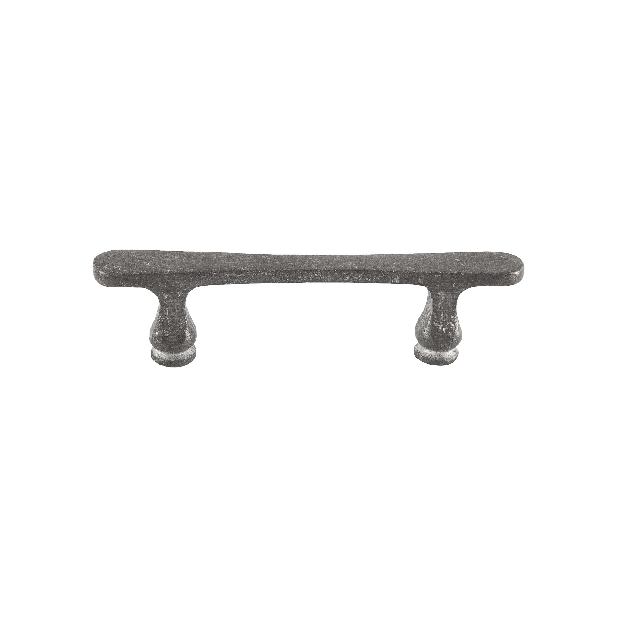 Description Poignée de meuble en métal brut avec un axe de 128 mm et une longueur totale de 184 mm