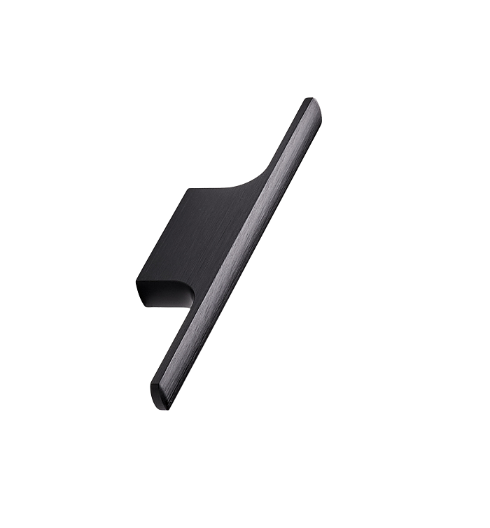 Cette poignée de meuble en aluminium est dotée d'une finition noire mate qui est ensuite brossée pour obtenir l'effet spécial.