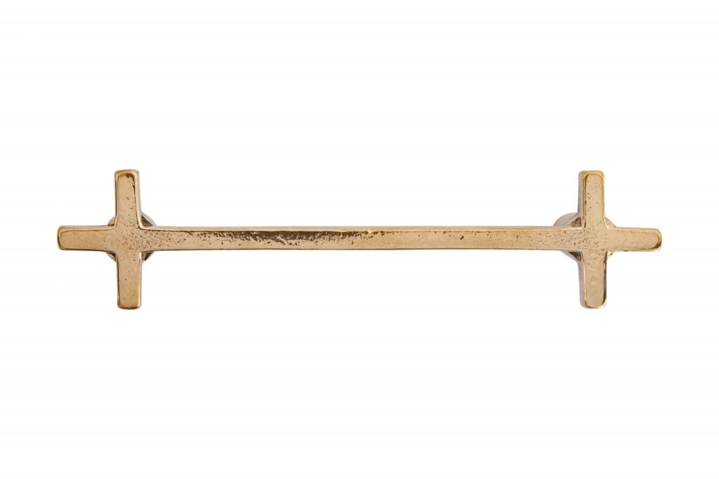 Poignée de meuble en forme de croix avec pieds ronds et axe de 128 mm.