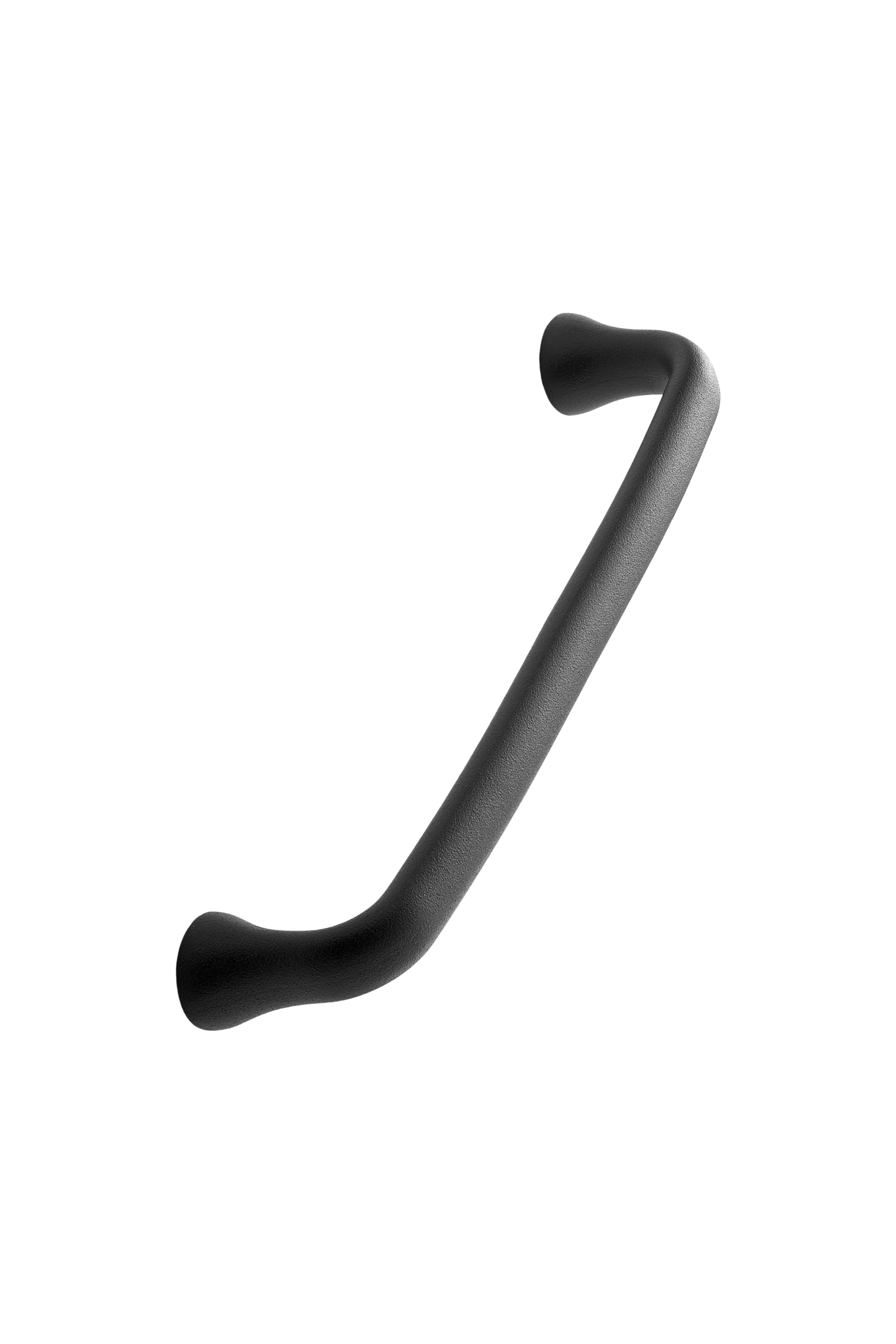 Cette poignée de meuble en fonte est finie avec un revêtement noir mat. Il ne s’agit pas d’une finition lisse, mais d’une finition avec un peu de structure.