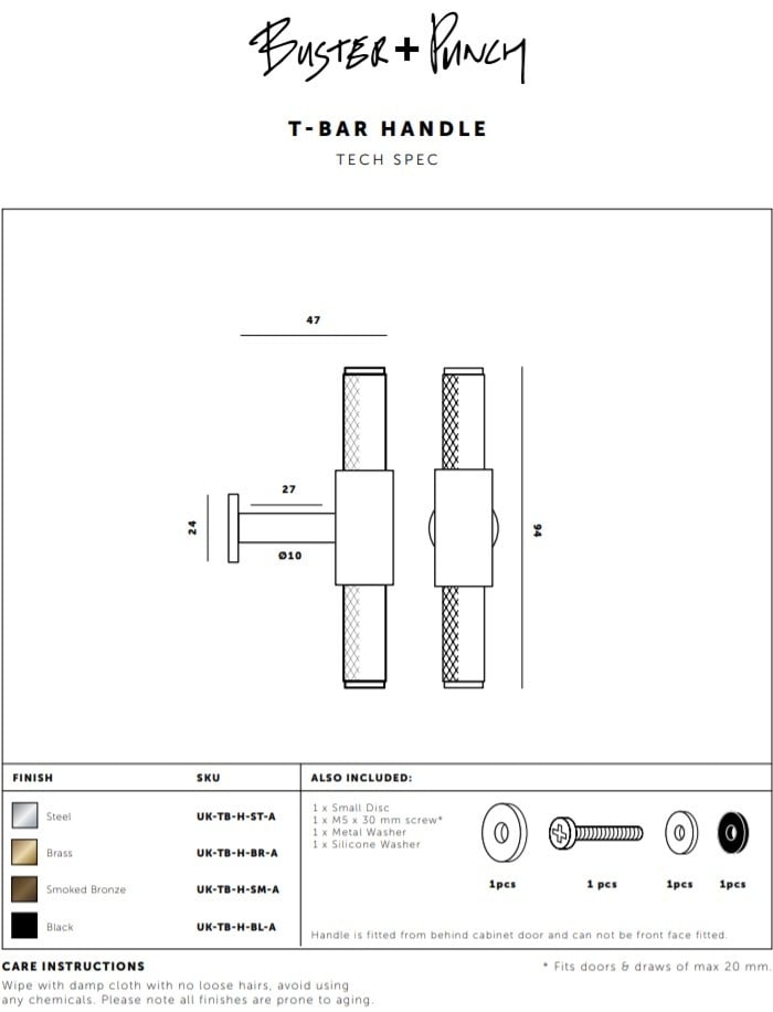 Poignée en T en laiton massif de la marque au design robuste Buster & Punch.