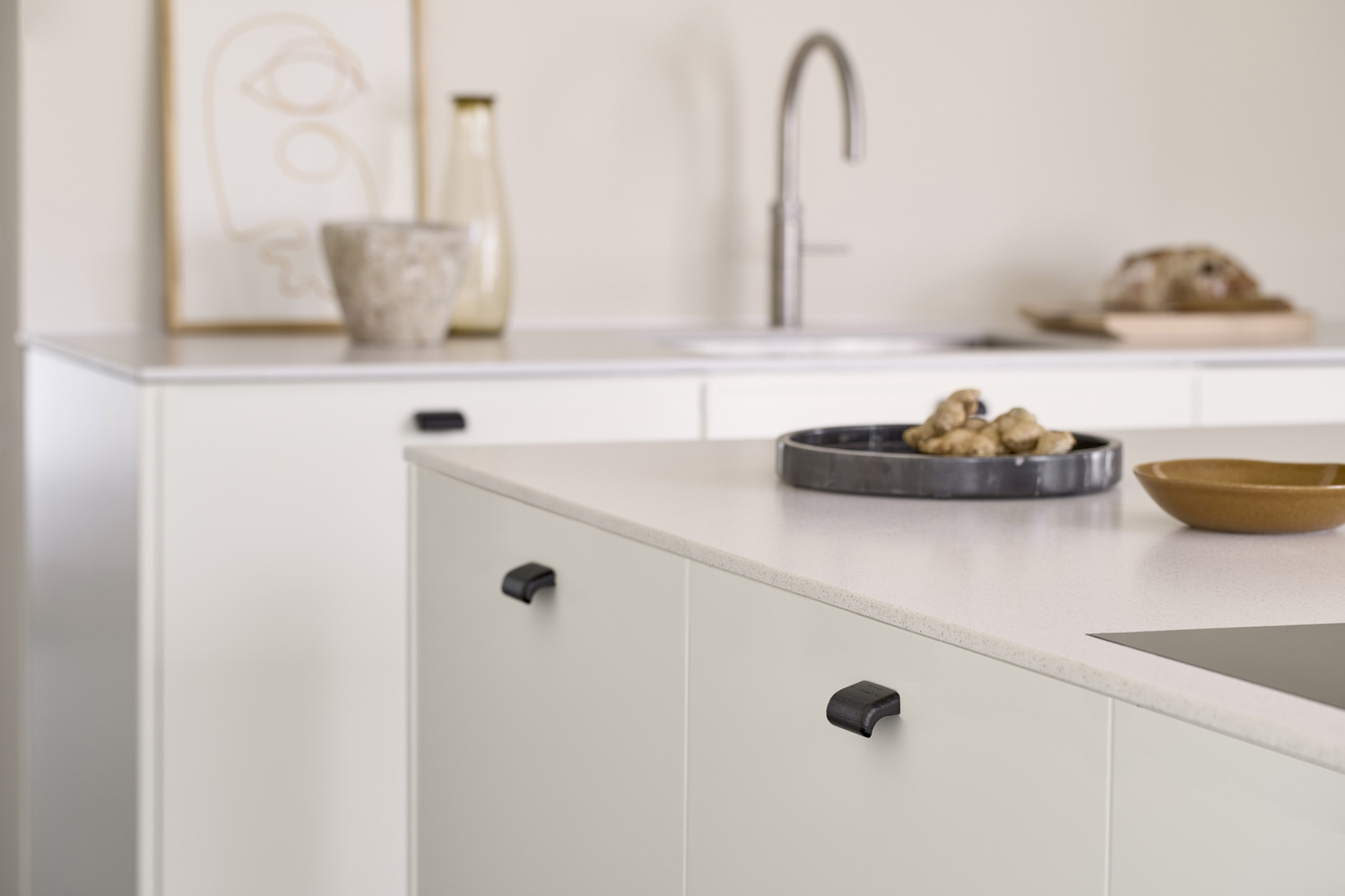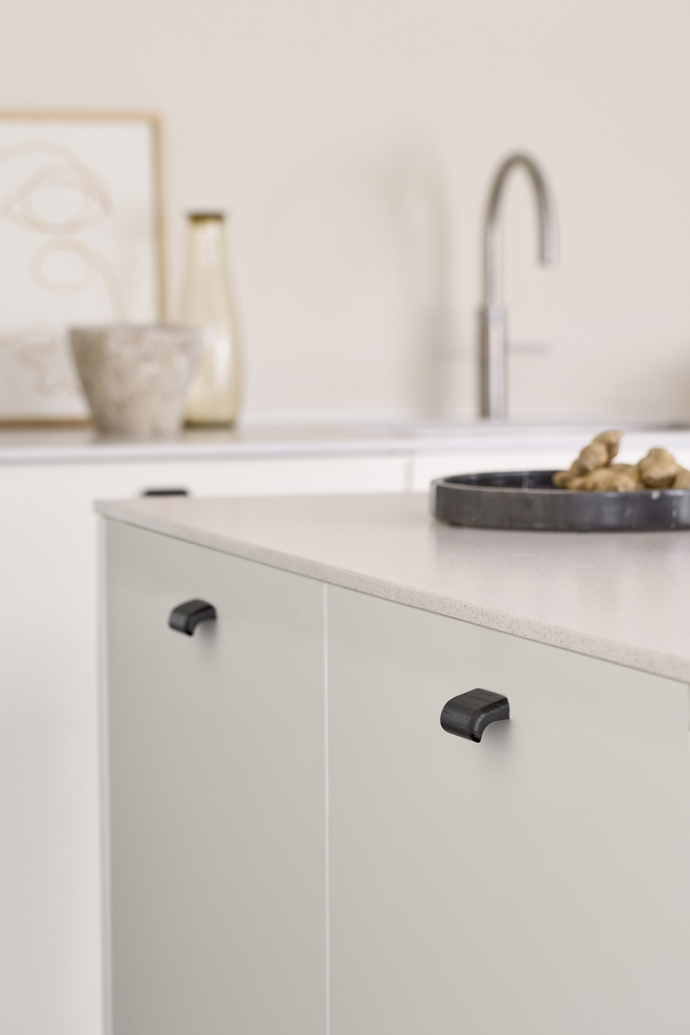 La poignée de meuble noire est en bois de frêne et est finie avec une laque noire mate solide à l'extrémité. Le matériau en combinaison avec une forme optimale assurera une adhérence parfaite.