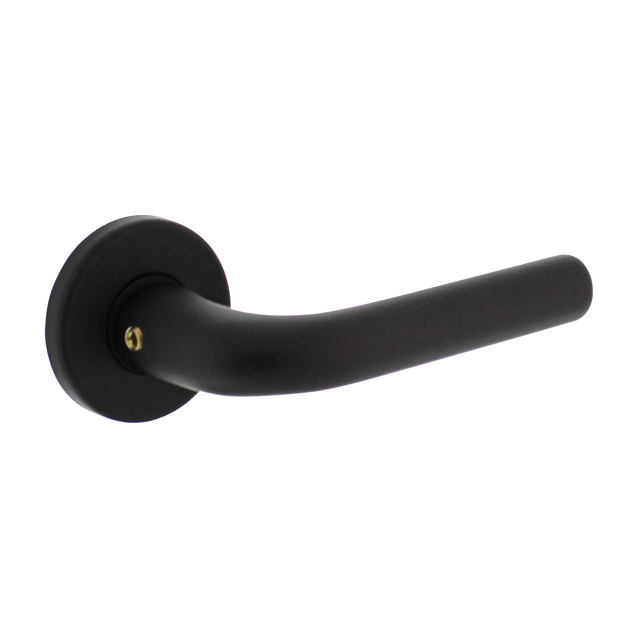 La poignée de porte "Eucla" sur rosace ronde est en aluminium et est disponible dans la couleur tendance noir mat.