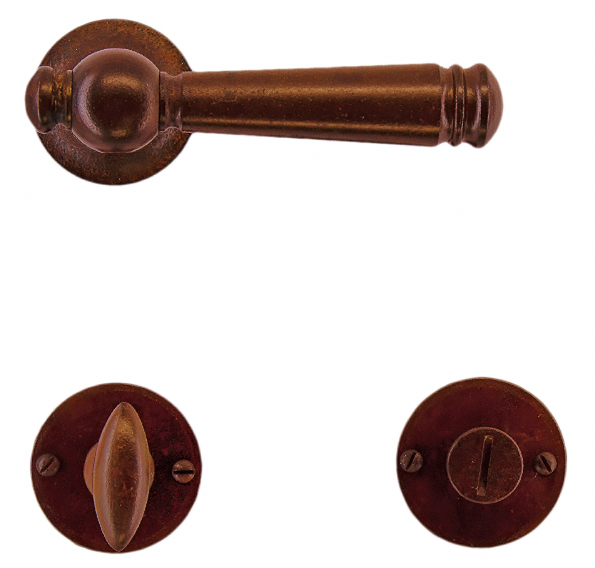 Très belles poignées de porte rustiques de couleur rouille sur une rosace ronde disponibles en 4 variantes
