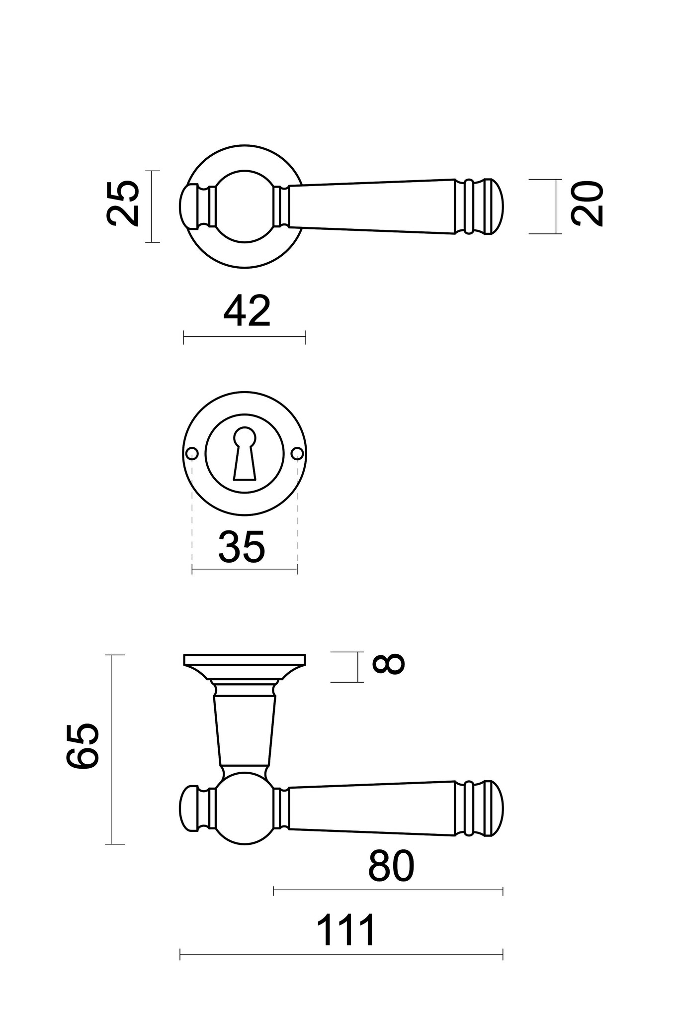 Les poignées de porte sont montées sur une rosace ronde de 42 mm et sont fournies par paire, comprenant une goupille de 8x8 mm et le matériel de montage.