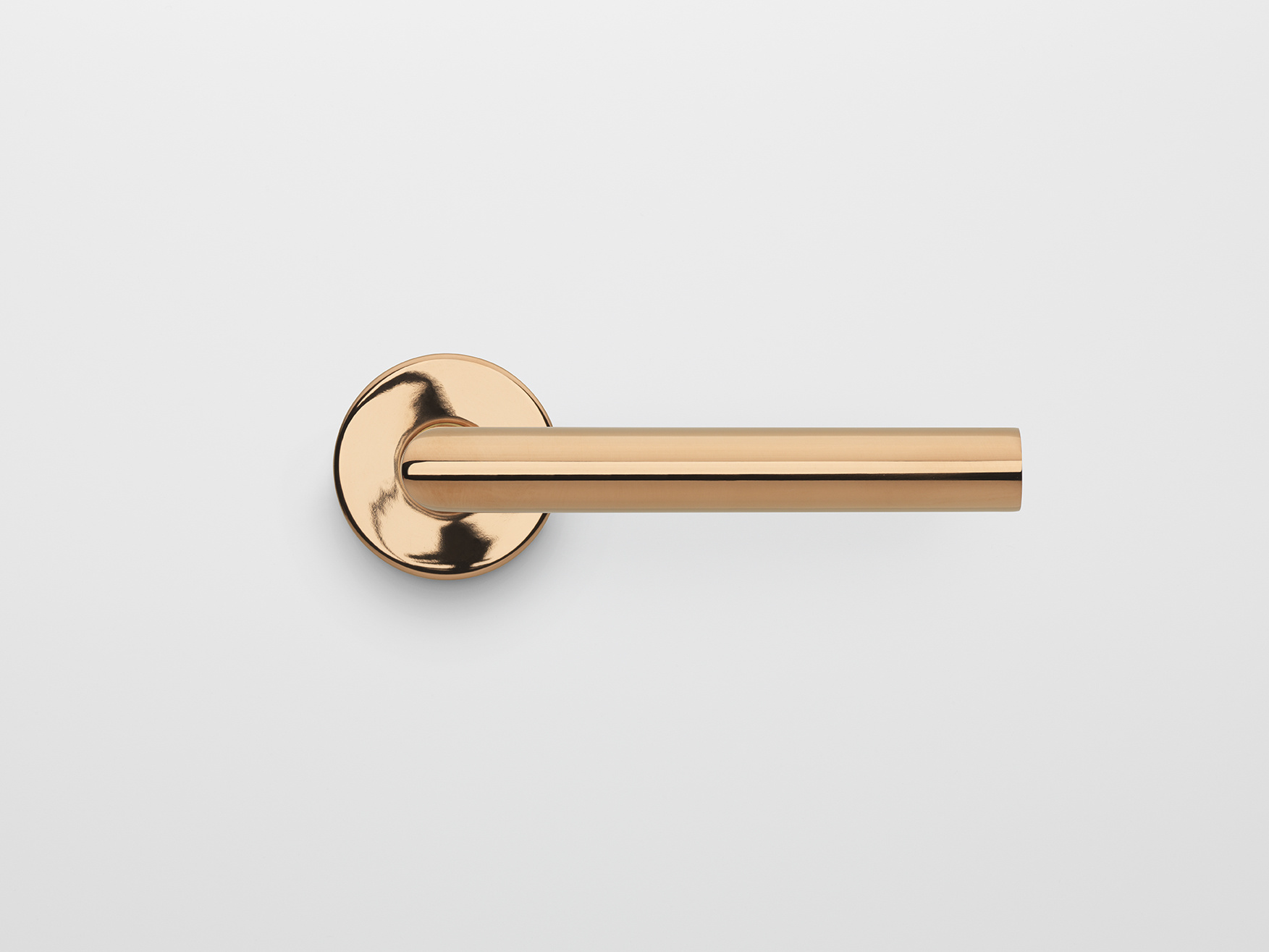 Ces poignées de porte sont de Formani de la série Basics. La base de ces poignées de porte est en acier inoxydable et est ensuite dotée d'un revêtement PVD en cuivre poli, qui assure une couche résistante à l'usure.