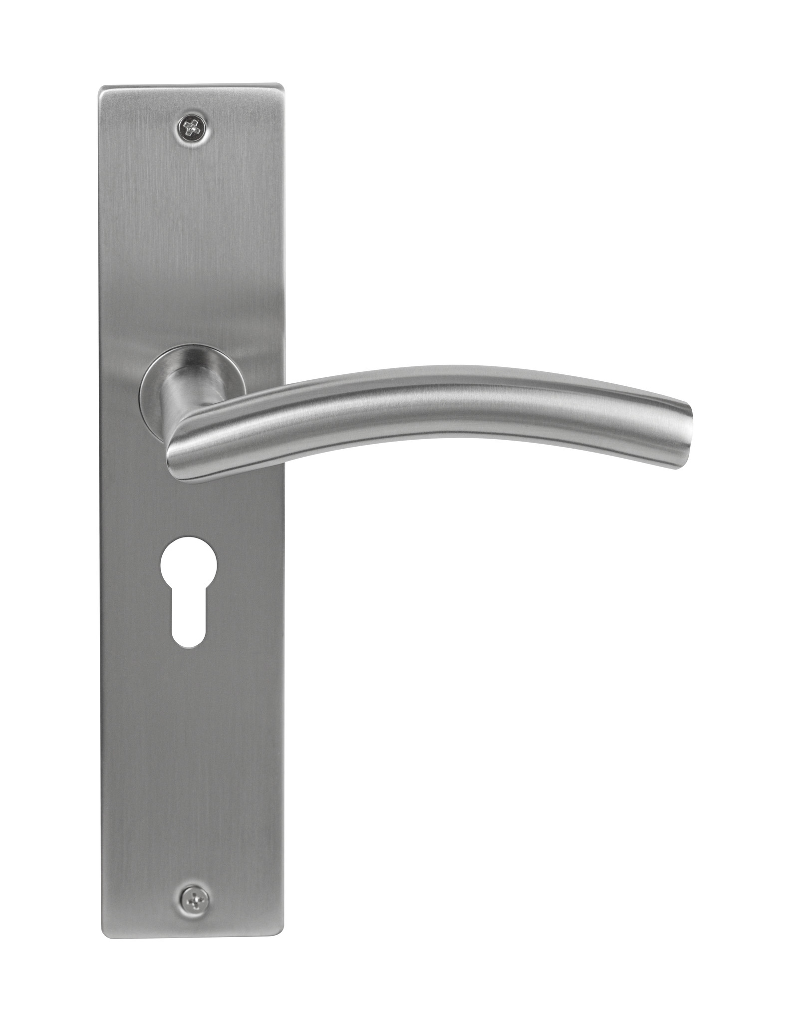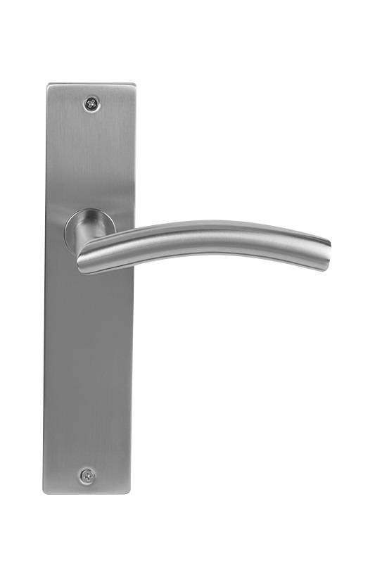 Ces poignées de porte en acier inoxydable Brasilia sont fournies avec une longue plaque rectangulaire de 245x53x9 mm (lxlxp).