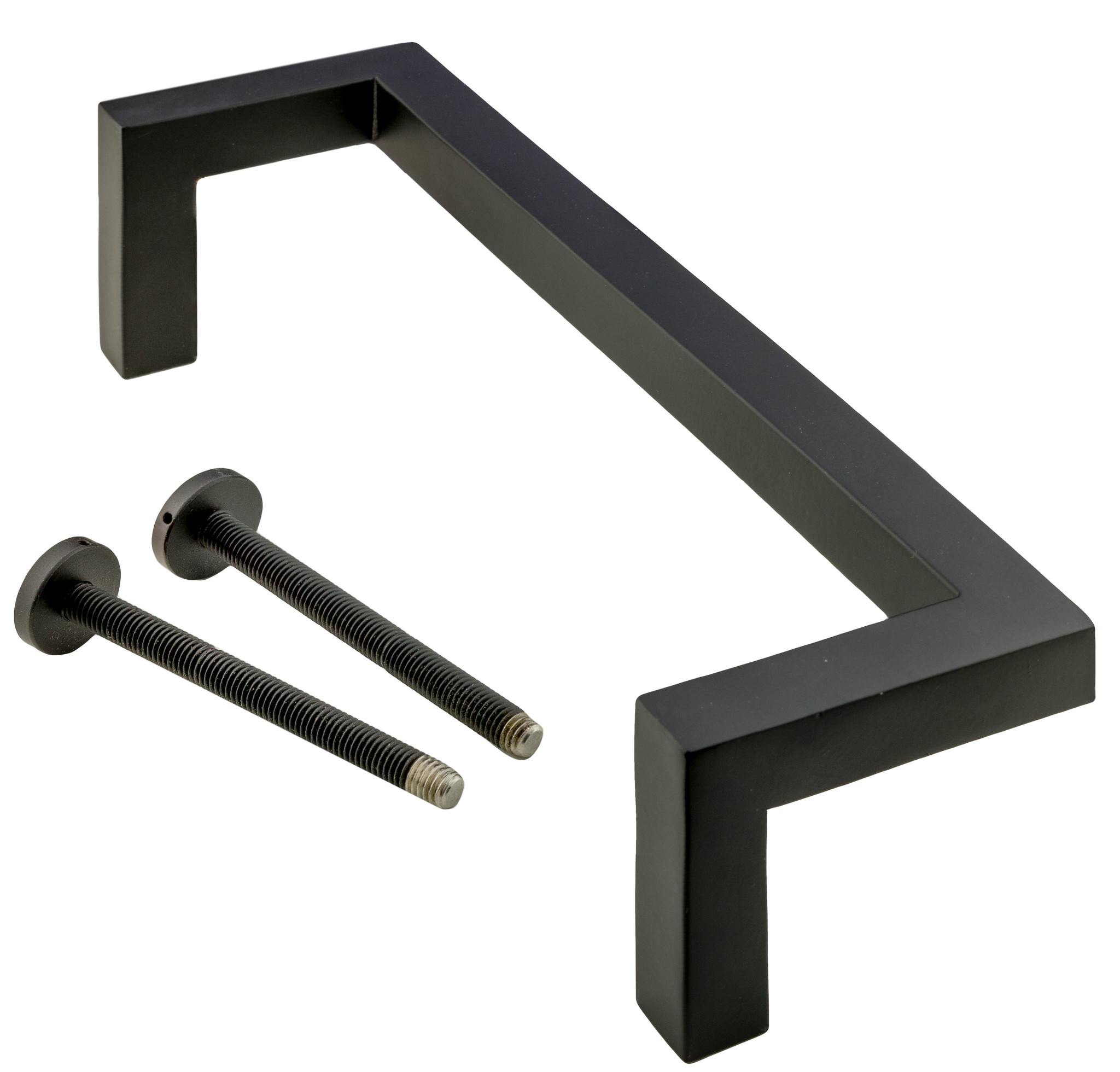 Poignée de porte carrée noire avec coude latéral pour montage continu