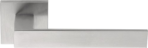Ces poignées de porte en inox sont équipées de rosaces carrées à ressort. Les poignées de porte sont également disponibles dans une version différente.