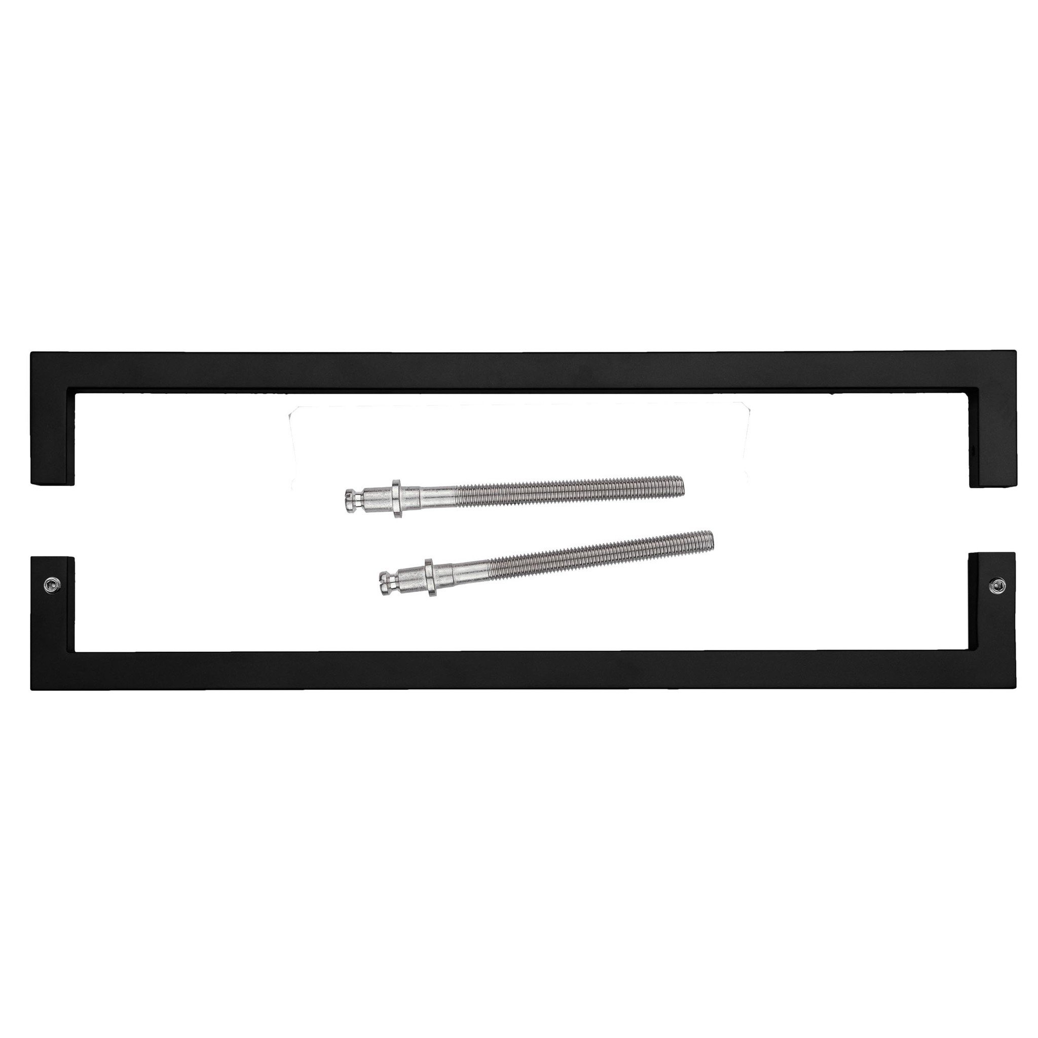 Ces poignées carrées noires sont fournies par paire avec le matériel de montage pour un montage continu sur des portes intérieures d'une épaisseur de 30 à 100 mm.