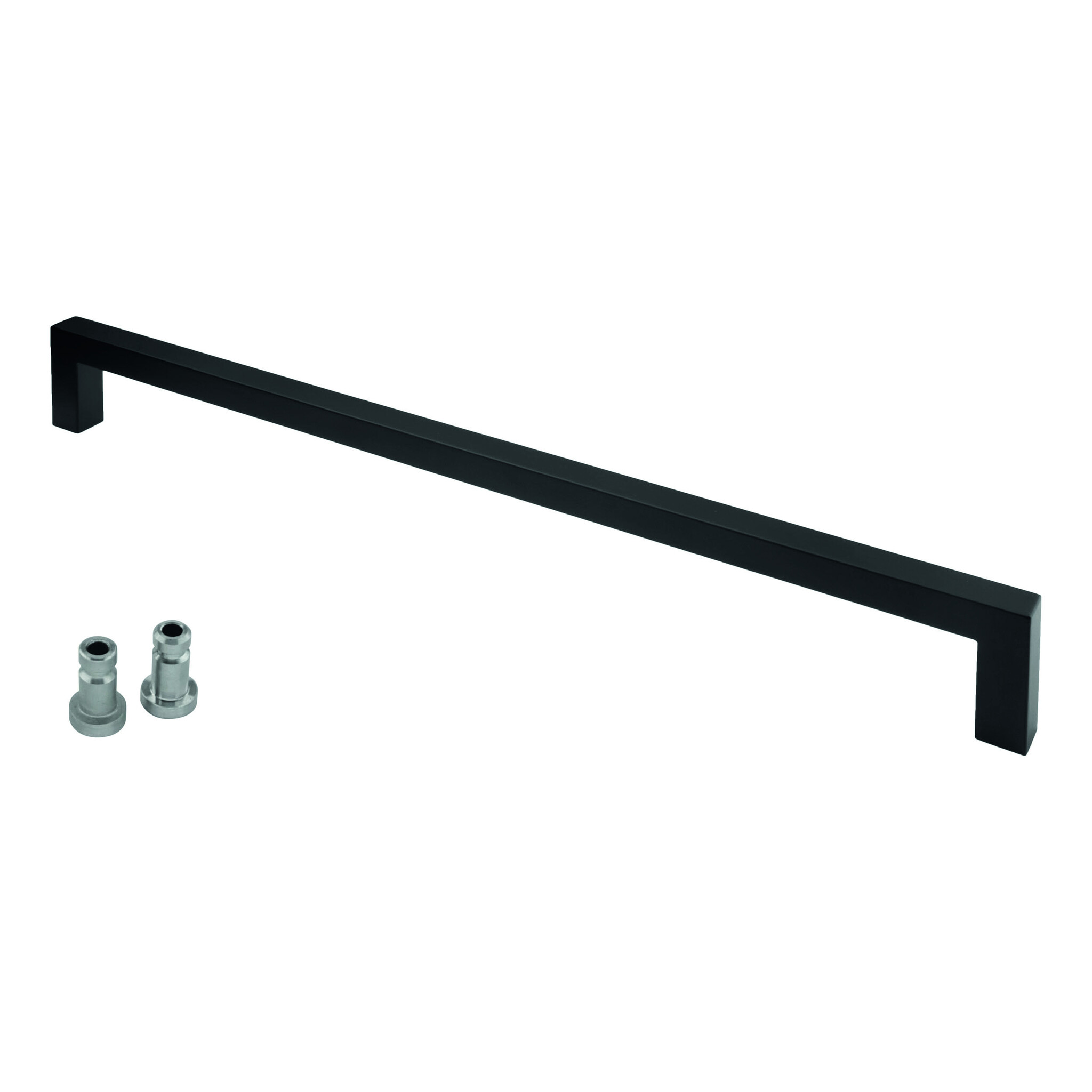 Poignée de porte moderne en forme de U noire avec une base en acier inoxydable et fabriquée en noir mat pour un montage dissimulé. Pour une utilisation en intérieur uniquement