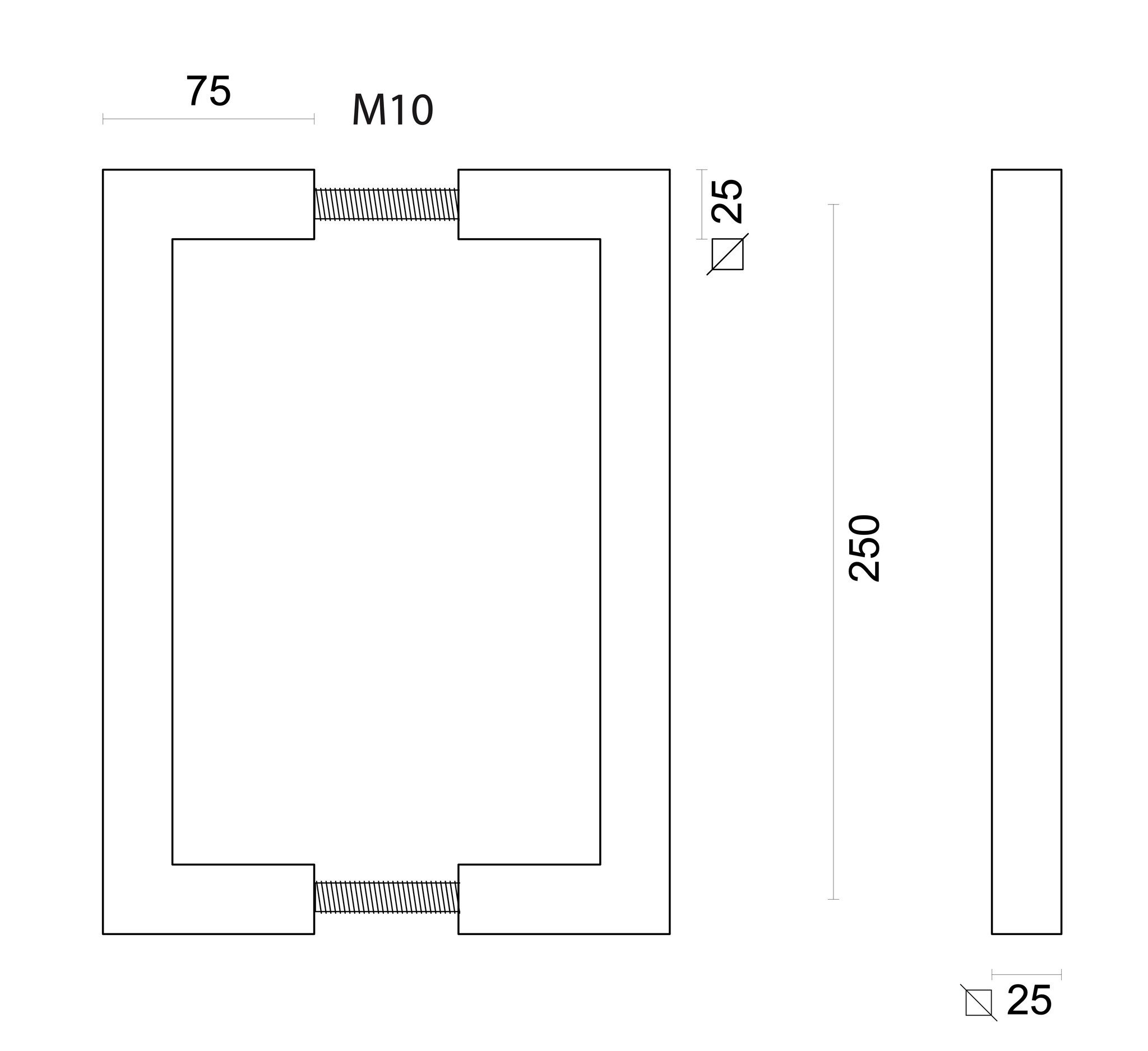 Description Poignée de porte carrée moderne fournie par paire pour une porte à partir de 30 mm avec un axe de 250 mm, adaptée à une utilisation en extérieur