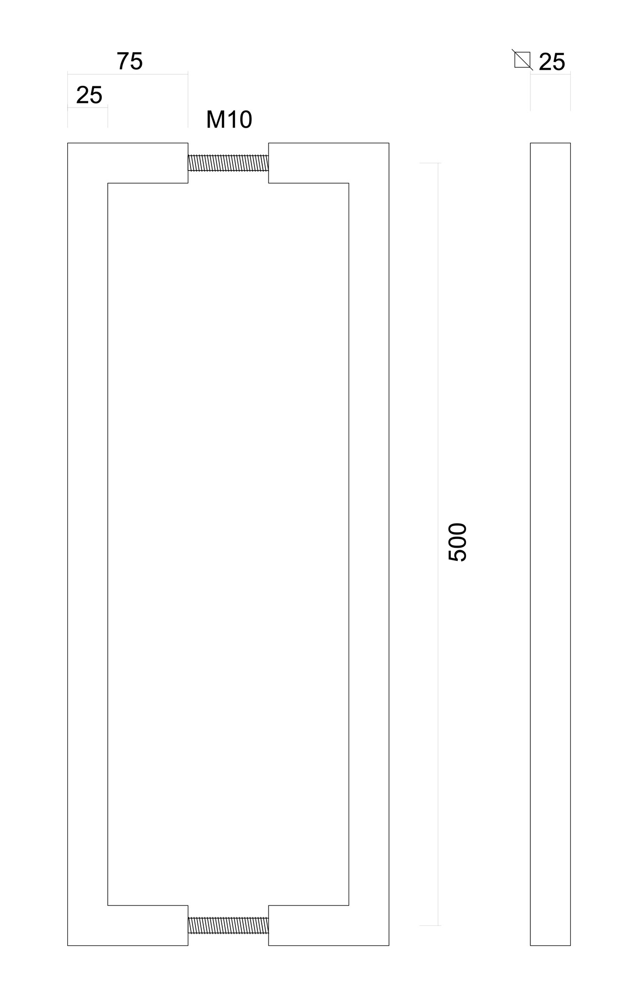 Poignées de porte en acier inoxydable en forme de U au look moderne. Les poignées de porte en acier inoxydable ont un diamètre de 25 mm et une taille d'axe de 500 mm.