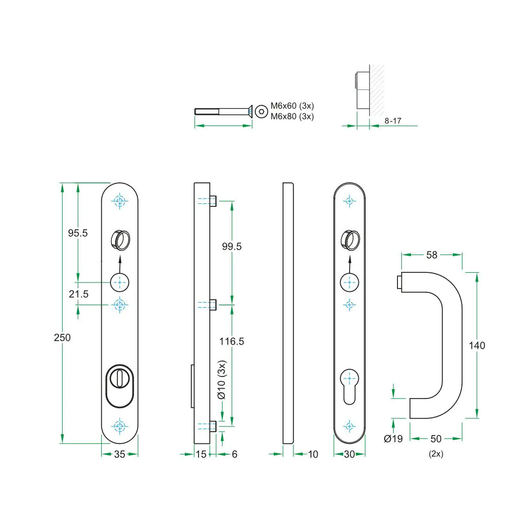 La fixation par vis dissimulées à l'intérieur du panneau de porte confère une esthétique épurée et moderne, sans points de fixation apparents. Adaptée aux portes de 37 à 57 mm d'épaisseur et compatible avec les portes en aluminium, bois, PVC et acier, cette quincaillerie est polyvalente et convient aussi bien aux espaces résidentiels qu'aux établissements de santé, ainsi qu'à divers types de bâtiments à fort passage.