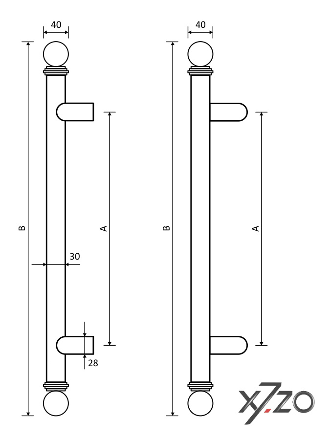 La poignée de porte en acier inoxydable brillant est disponible en différentes longueurs que vous pouvez choisir dans le menu déroulant en haut à droite.