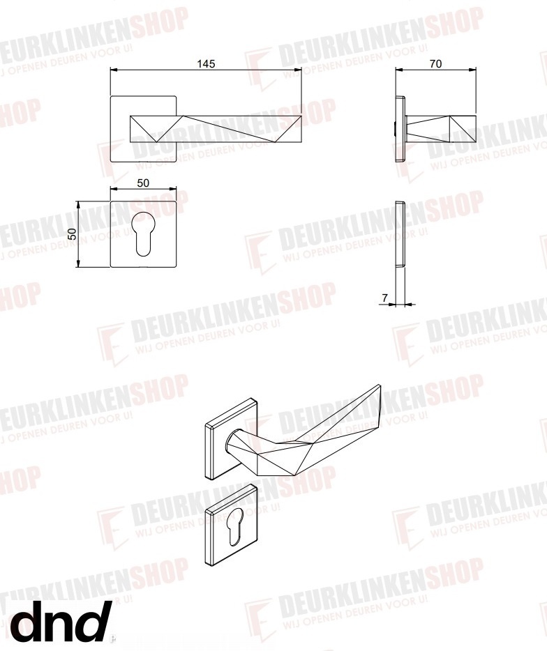 Ces poignées de porte exclusives reposent sur des rosaces à ressort carrées (50x7 mm) et conviennent à une épaisseur de porte de 54 mm.