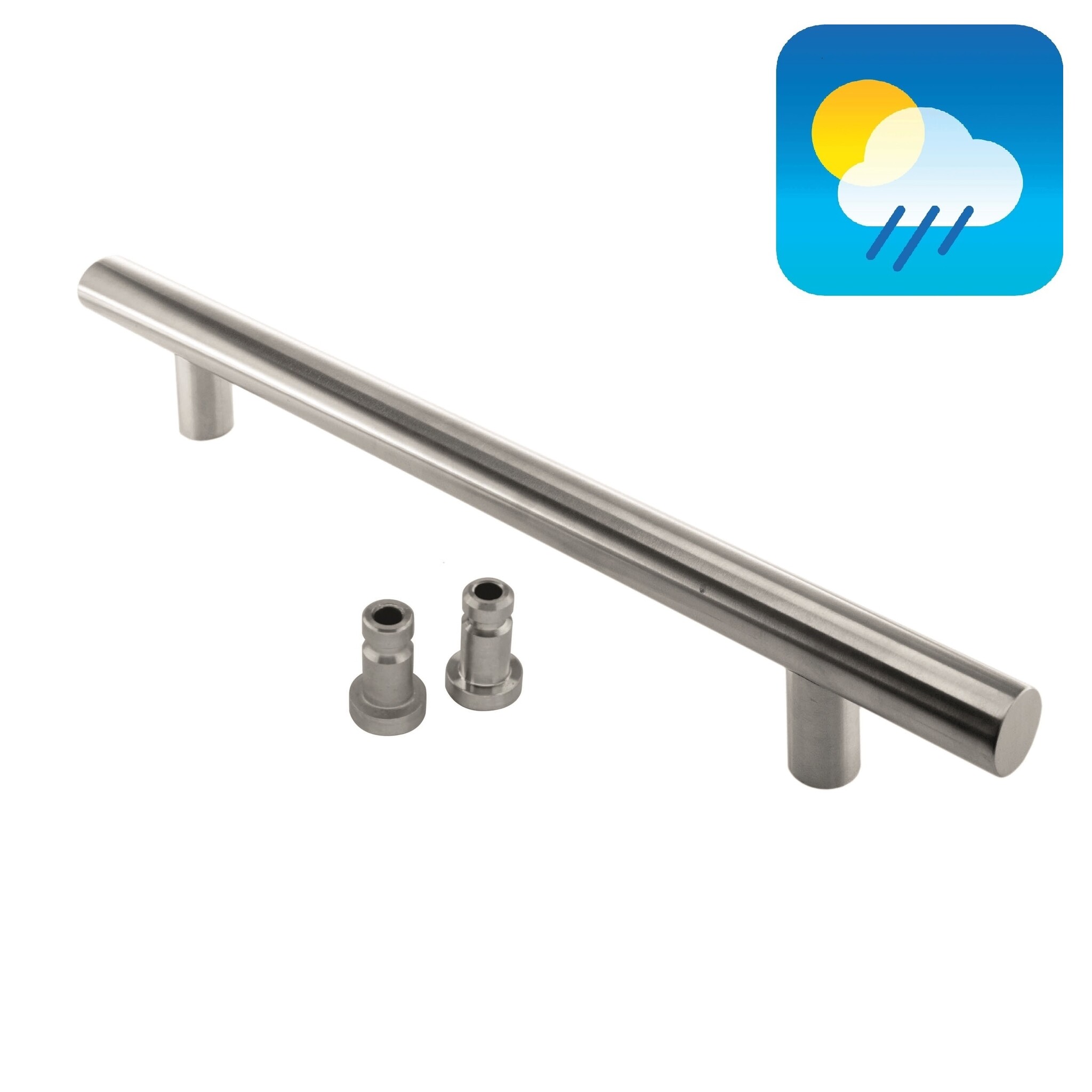Belle poignée de porte épaisse modèle T au look moderne, également adaptée à une utilisation en extérieur, en acier inoxydable pour montage en aveugle