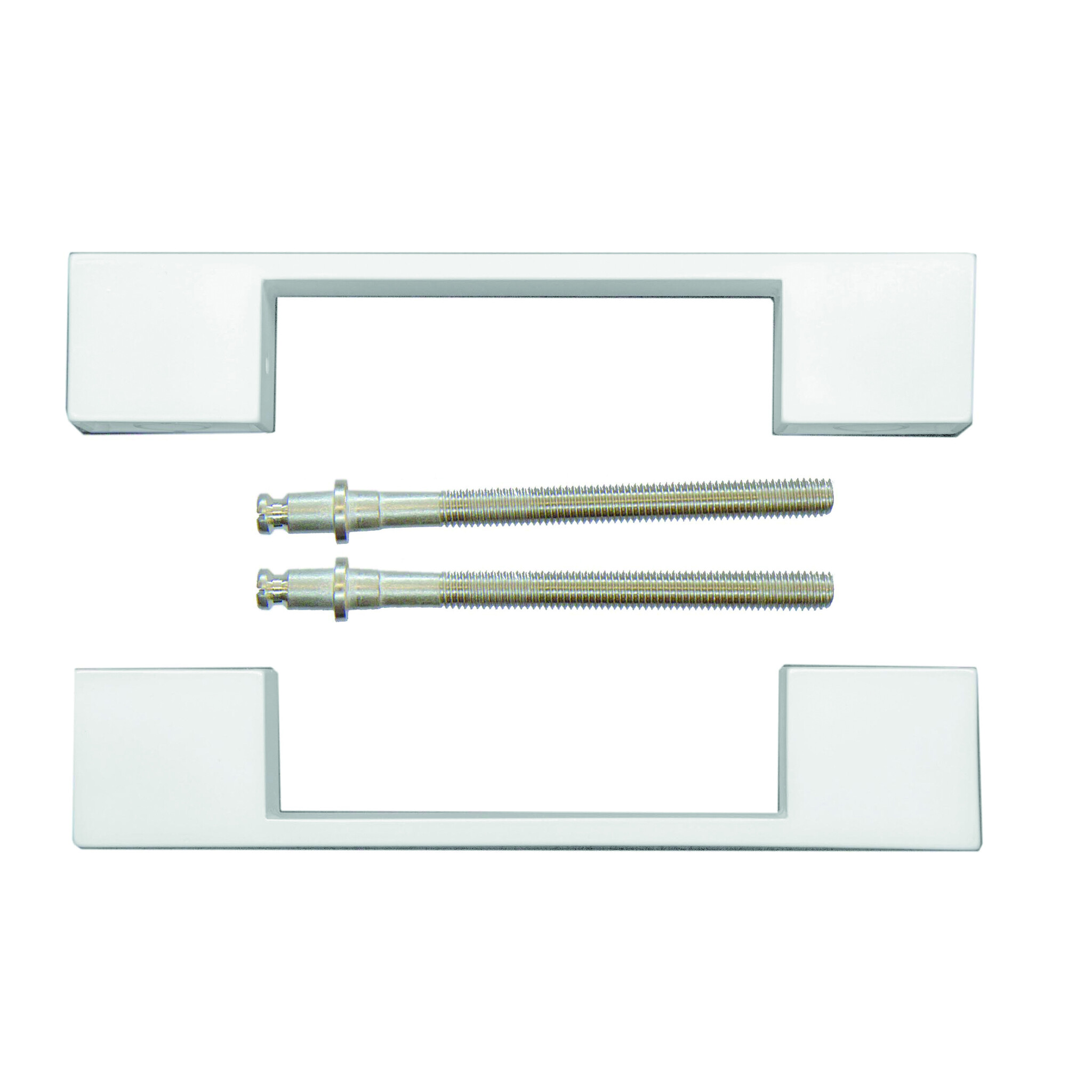 Description Paire de poignées de porte modernes pour montage continu sur portes d'une épaisseur minimale de 30 mm. Disponible en blanc avec une base plus large