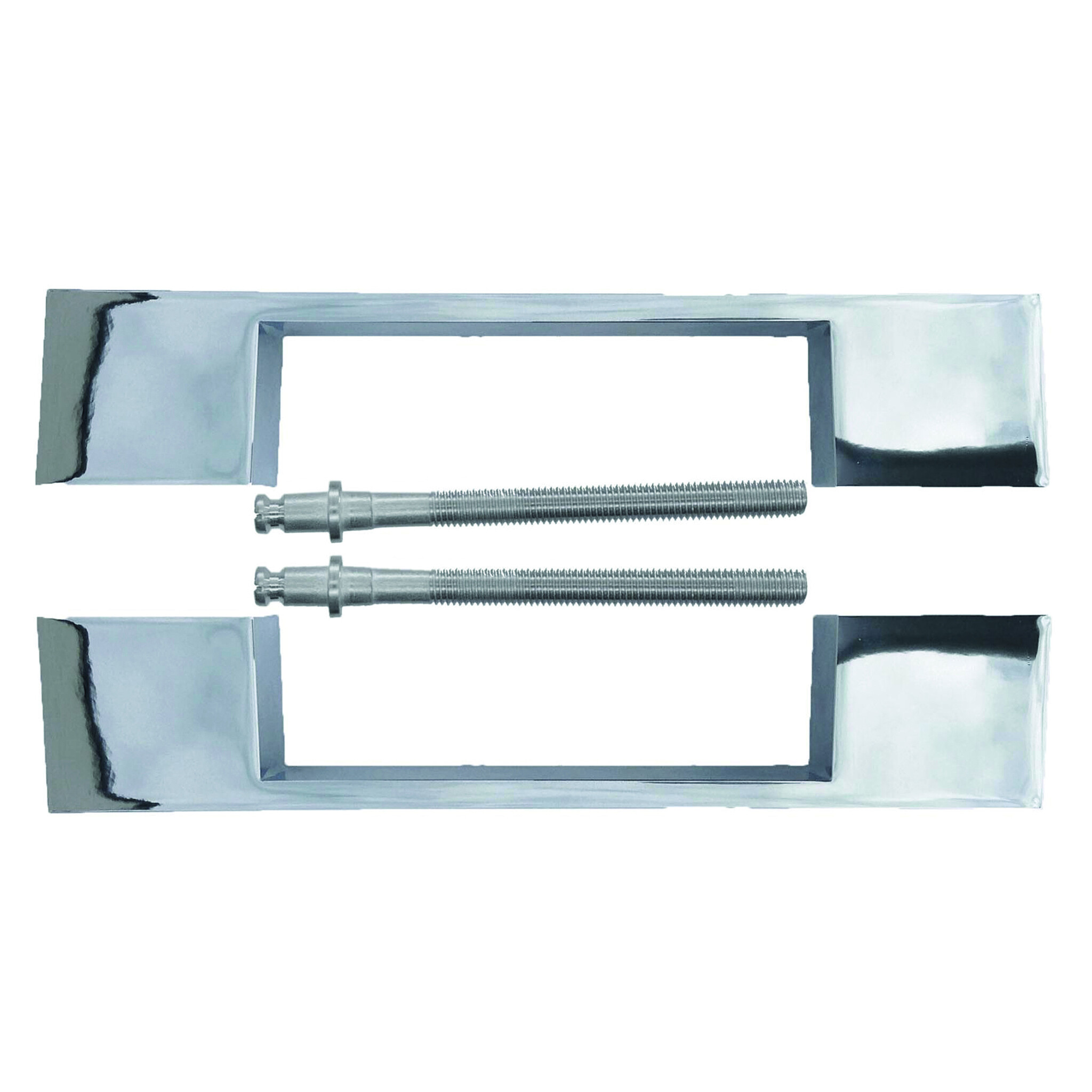 Paire de poignées de porte modernes pour montage continu sur portes d'une épaisseur minimale de 30 mm. Fabriqué en Chrome Satiné avec une base plus large