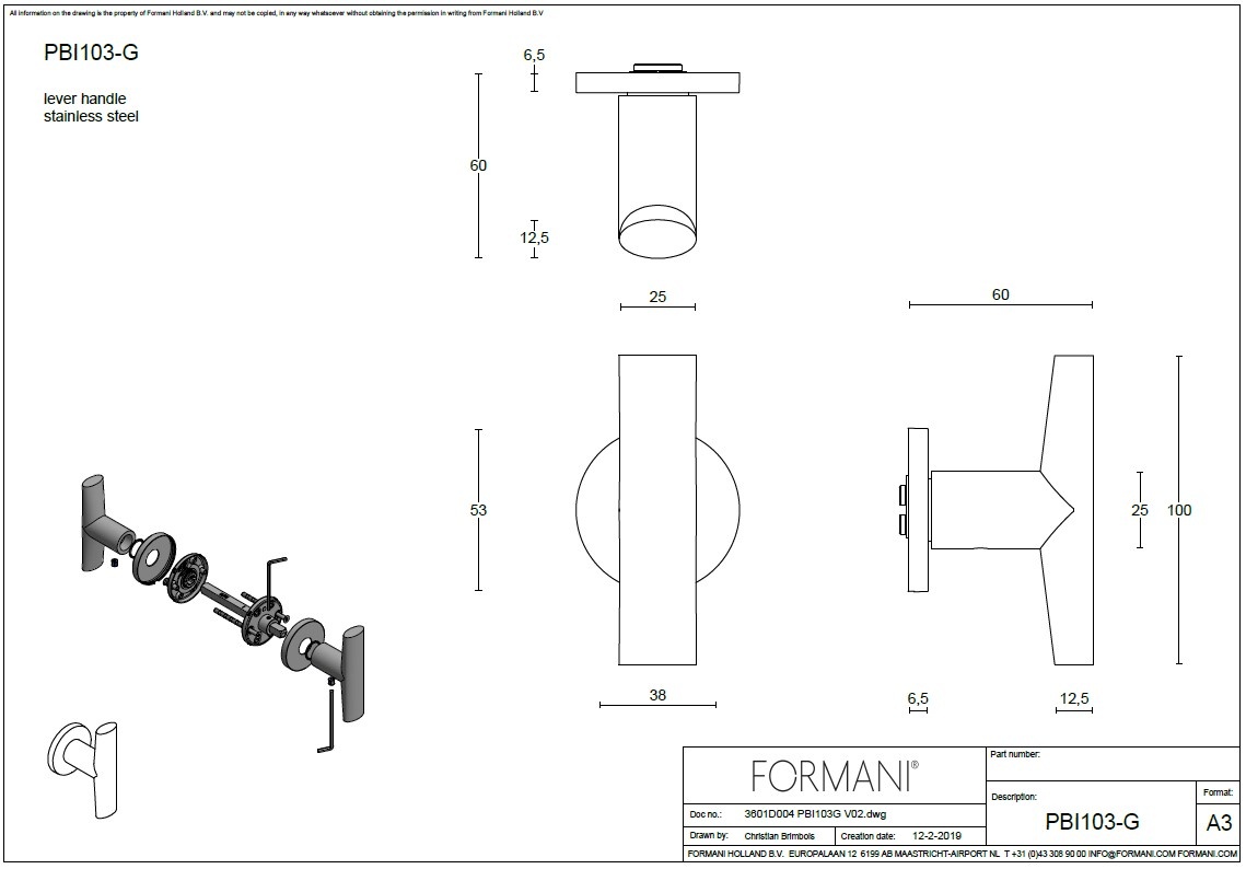 Les poignées de porte INC PBI103-G sont fournies par paire sans rosaces, avec matériel de montage et tige carrée. Elles conviennent aux portes intérieures d'une épaisseur de 38 à 45 mm.
