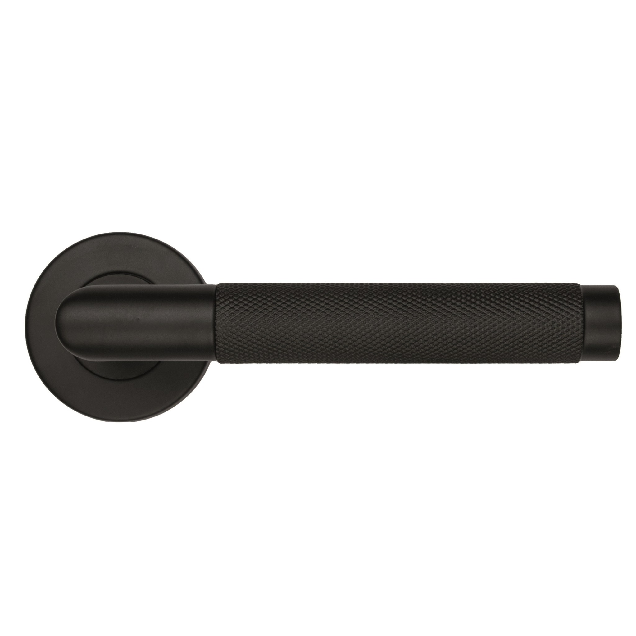 Les poignées de porte noires sont montées sur des rosaces rondes et sont disponibles en quatre versions : sans plaque de clé, avec plaque de clé, avec plaque de cylindre et avec garniture WC. Faites votre choix dans le menu déroulant.